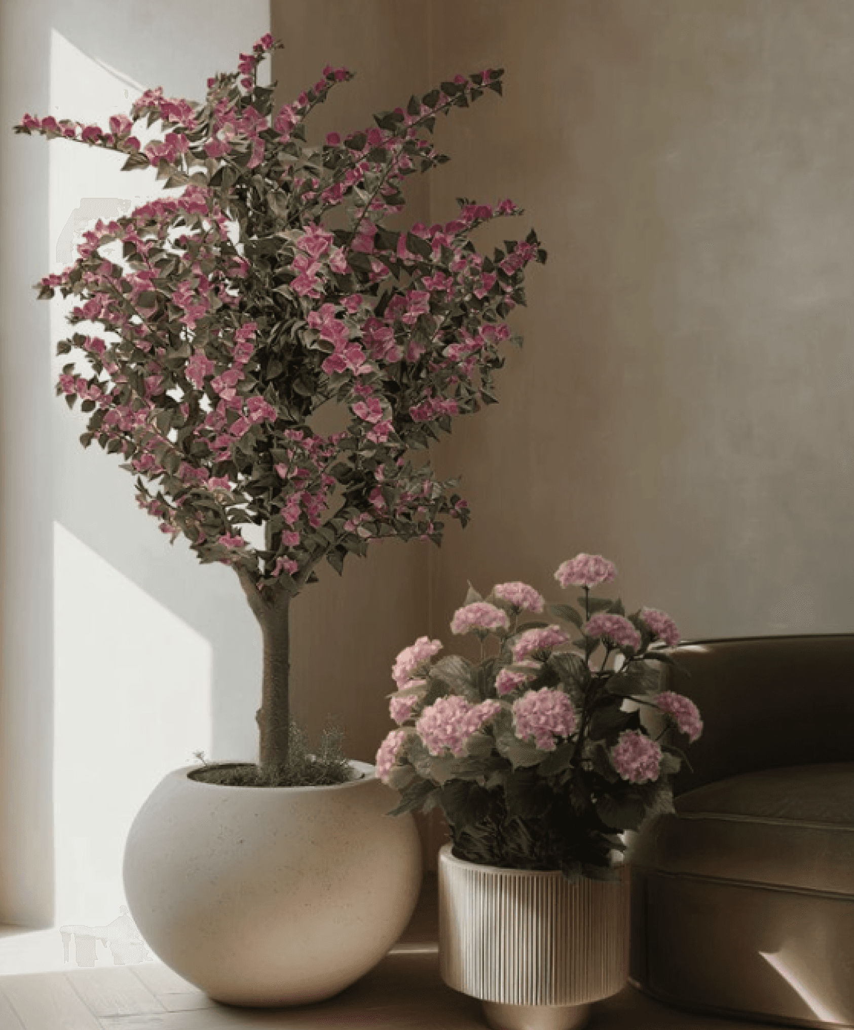 Handcrafted artificial plants in designer pots. Built for hotel lobbies, office receptions, and high-end residential spaces where maintenance is not an option.